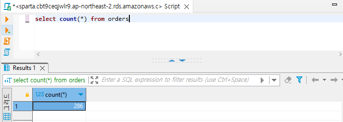 orders 테이블의 데이터를 모두 불러와서, 한줄한줄씩 세는 것 보다 count 기능을 사용하여 편하게 구할 수 있다.