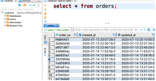 쿼리문을 해석해 보면 orders라는 테이블에 있는 모든 데이터를 가져와줘 라는 의미로 해석할 수 있다.