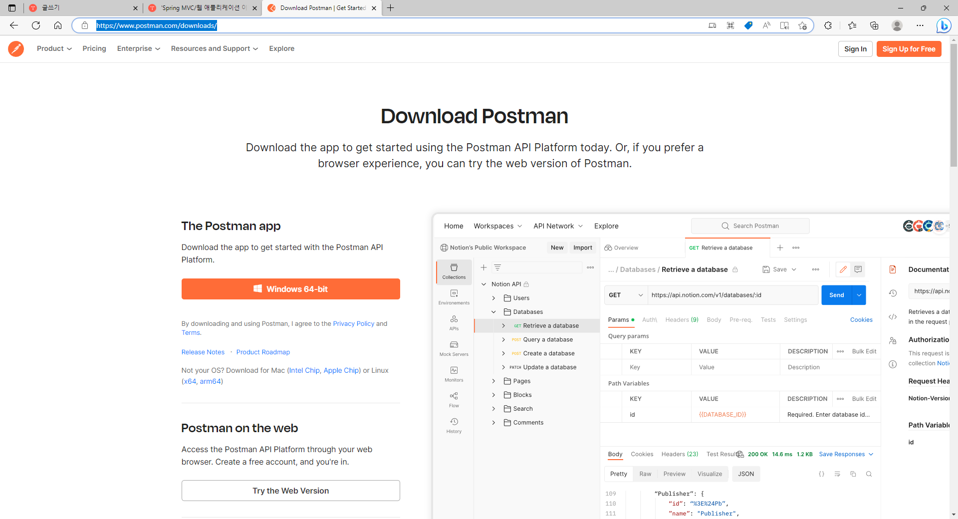 이어서 https://www.postman.com/downloads/에 접속 후 postman을 다운받아준다.