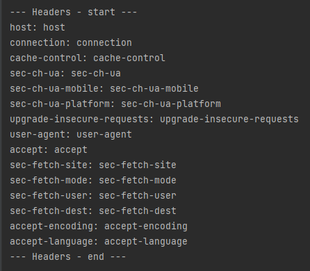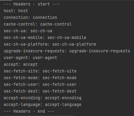System.out.println("--- Headers - end ---");