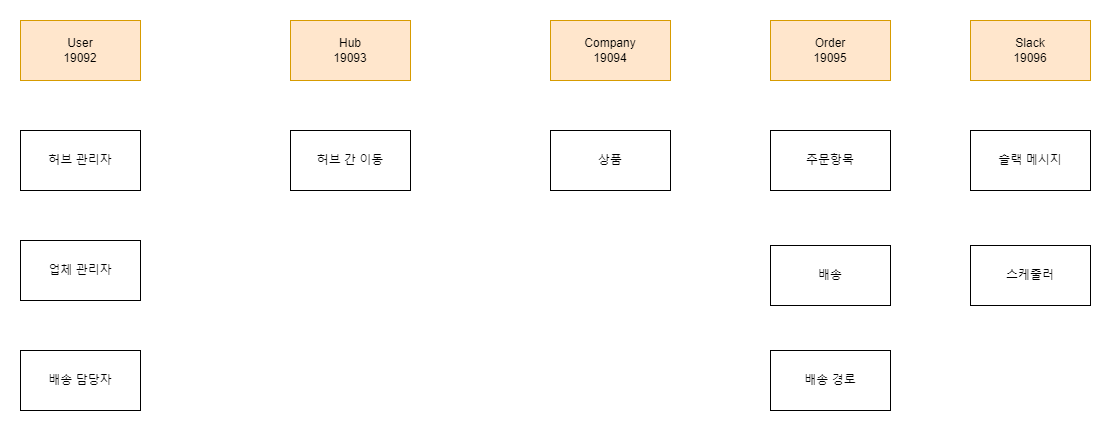 - 아래 사진과 같이 서비스를 분리했으며 저는 Order부분을 구현하였습니다.
